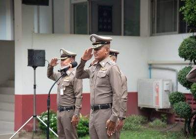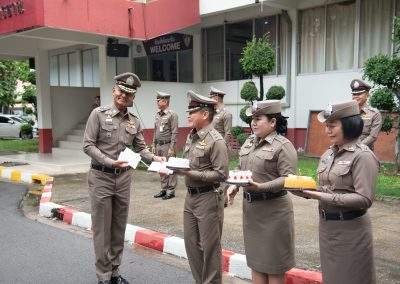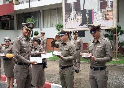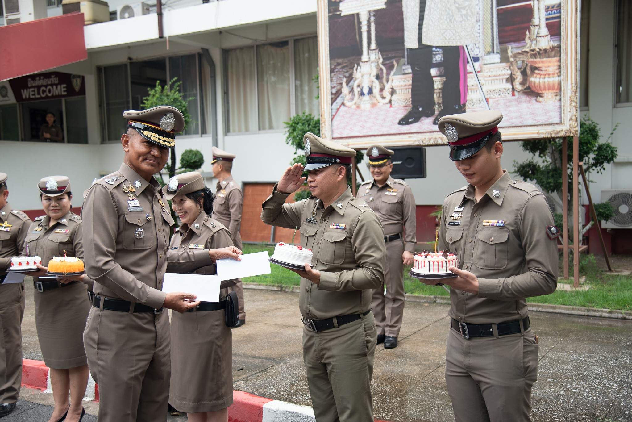 30 ก.ค.2567 เวลา 08.30 น. พล.ต.ต.สรรธาน อินทรจักร์ ผบก.ภ.จว.อุดรธานี, พ.ต.อ.พิเชฐ วงษ์บุรี รอง ผบก.ฯ พร้อมข้าราชการตำรวจในสังกัด ร่วมเข้าแถวเคารพชาติ สวดมนต์ ไหว้พระ กิจกรรมสำนึกในสถาบัน ชี้แจงข้อราชการ และมอบเค้กวันเกิดให้แก่ผู้ที่เกิดในห่วงเดือนนี้ เพื่อเป็นขวัญกำลังใจให้แก่ผู้ใต้บังคับบัญชา และได้ร่วมอวยพรวันคล้ายวันเกิดให้แก่ผู้บังคับการตำรวจภูธรจังหวัดอุดรธานี ณ ลานหน้าอาคารตำรวจภูธรจังหวัดอุดรธานี