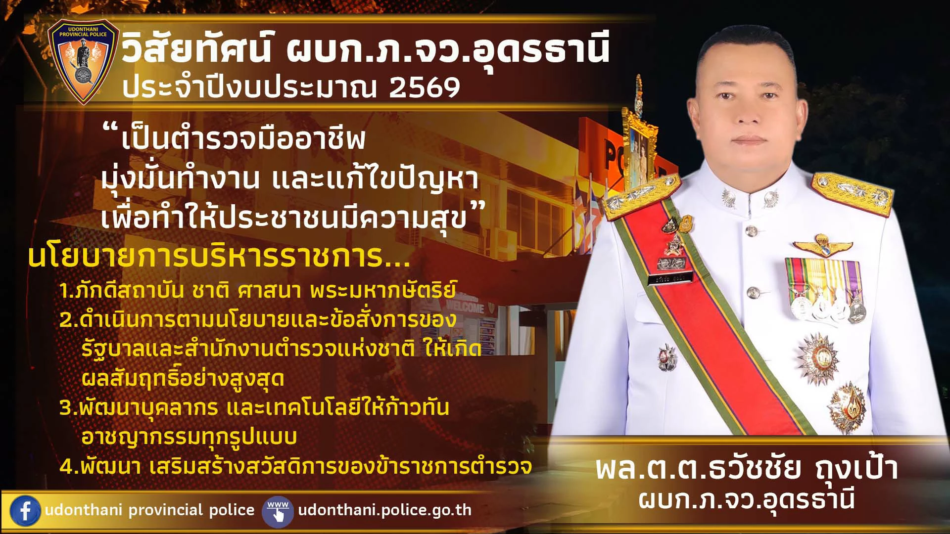 8 ม.ค.2569 เวลา 07.00 น. พล.ต.ต.ธวัชชัย ถุงเป้า ผบก.ภ.จว.อุดรธานี มอบหมายให้ พ.ต.อ.จามร อันดี รอง ผบก.ฯ, พร้อมด้วยข้าราชการตำรวจในสังกัดฯ...