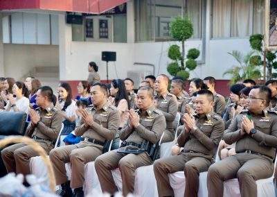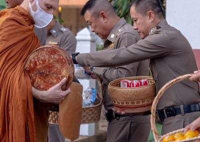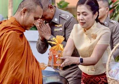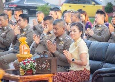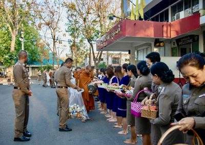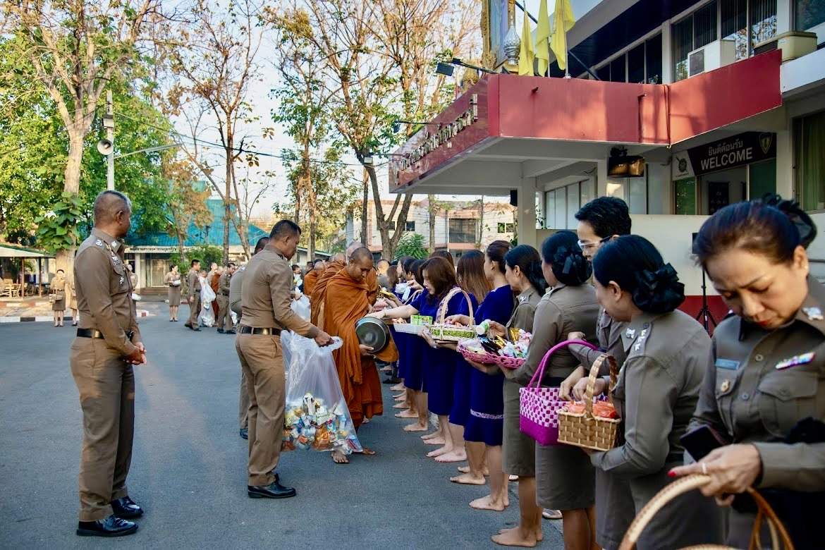 7 ก.พ.2567 เวลา 07.00 น. พล.ต.ต.สรรธาน อินทรจักร์ ผบก.ภ.จว.อุดรธานี และคุณจิรพันธ์ อินทรจักร์ ประธานแม่บ้านตำรวจภูธรจังหวัดอุดรธานี พร้อมด้วย รองผู้บังคับการ, หัวหน้าสถานีตำรวจ คณะข้าราชการตำรวจในสังกัด แม่บ้านตำรวจ เจ้าหน้าที่สหกรณ์ออมทรัพย์ตำรวจภูธรจังหวัดอุดรธานี ร่วมกิจกรรมทำบุญตักบาตร แด่พระสงฆ์ จำนวน 9 รูป เพื่อความเป็นสิริมงคล ร่วมสืบสานขนบธรรมเนียมประเพณีอันดีงาม ถวายเป็นพุทธบูชา และส่งเสริมพุทธศาสนา ณ ลานหน้าอาคารที่ทำการ ภ.จว.อุดรธานี