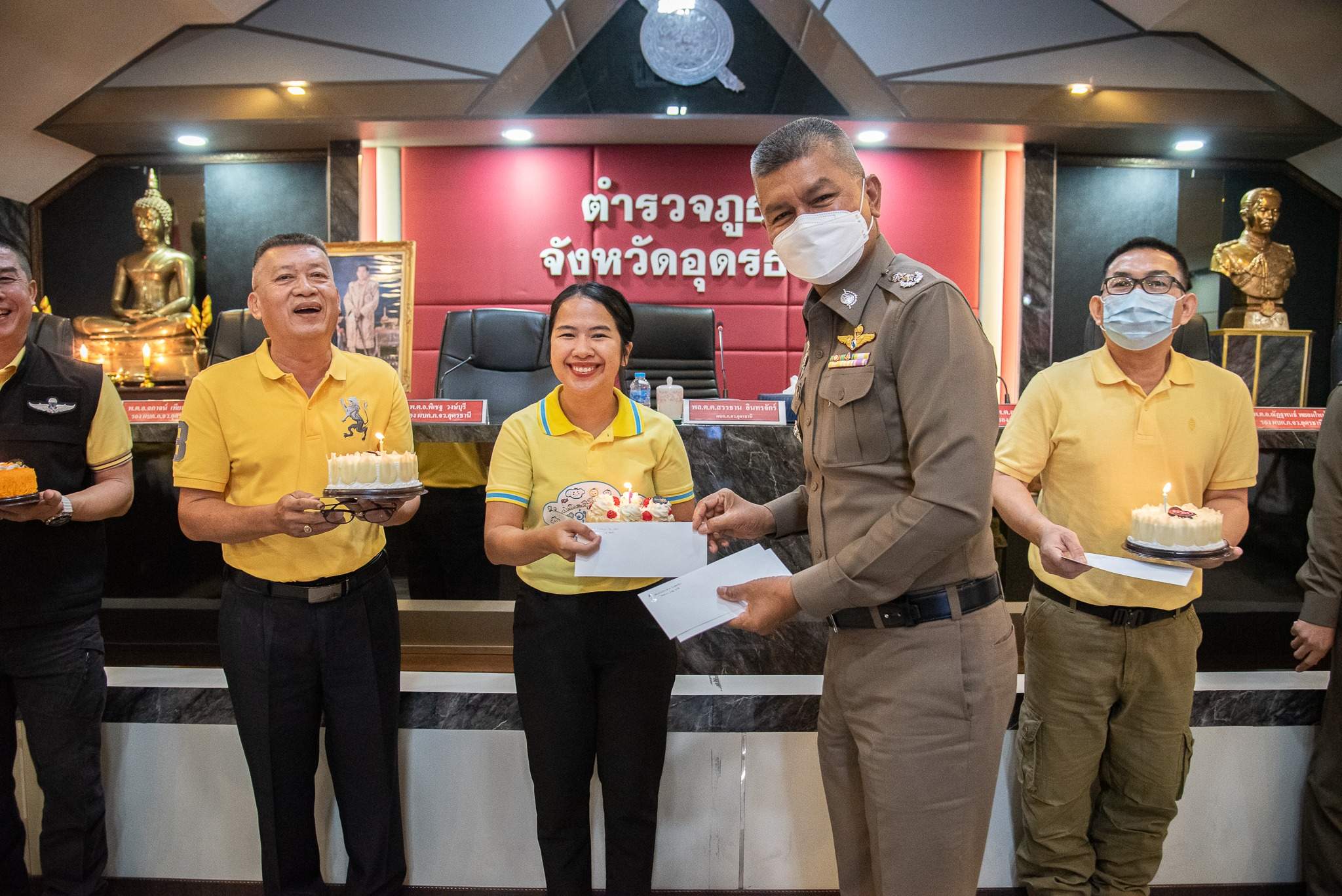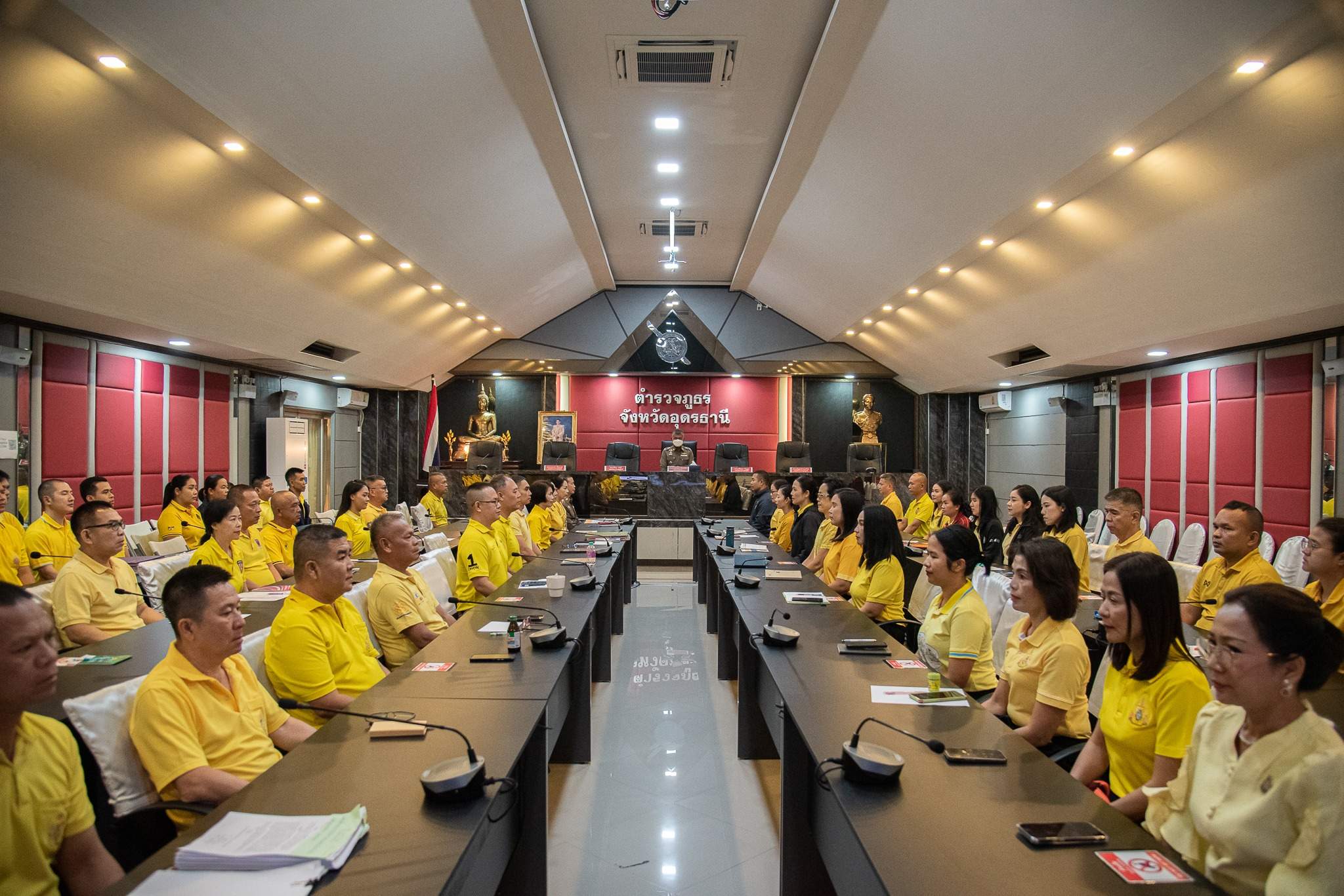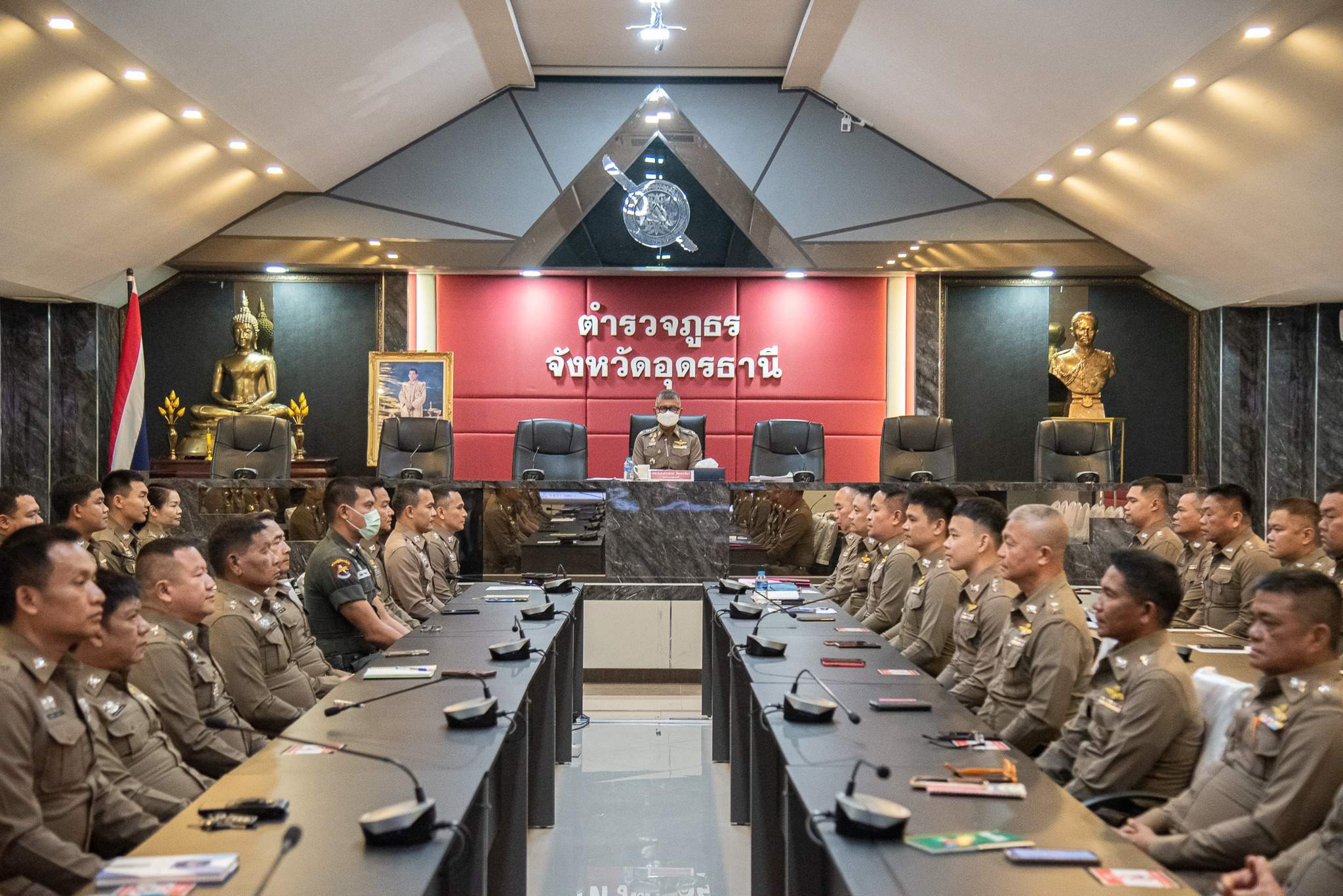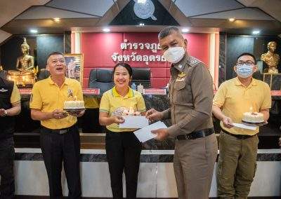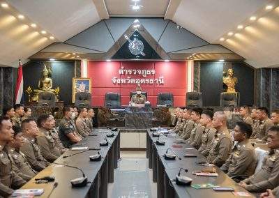 4 มี.ค.2567 เวลา 09.00 น. พล.ต.ต.สรรธาน อินทรจักร์ ผบก.ภ.จว.อุดรธานี พร้อมข้าราชการตำรวจในสังกัดฯ ร่วมกันทำกิจกรรมเคารพธงชาติ สวดมนต์ไหว้พระ กิจกรรมสำนึกในสถาบัน และประชุมชี้แจงข้อราชการเพื่อรับทราบ แก้ไข ปัญหาข้อขัดข้องในการปฏิบัติหน้าที่ และมอบเค้กวันเกิดให้แก่ผู้ที่เกิดในห้วงเดือน ก.พ.67 เพื่อเป็นขวัญและกำลังใจแก่ผู้ใต้บังคับบัญชา ณ ห้องประชุมฉัตรไพฑูรย์ ภ.จว.อุดรธานี