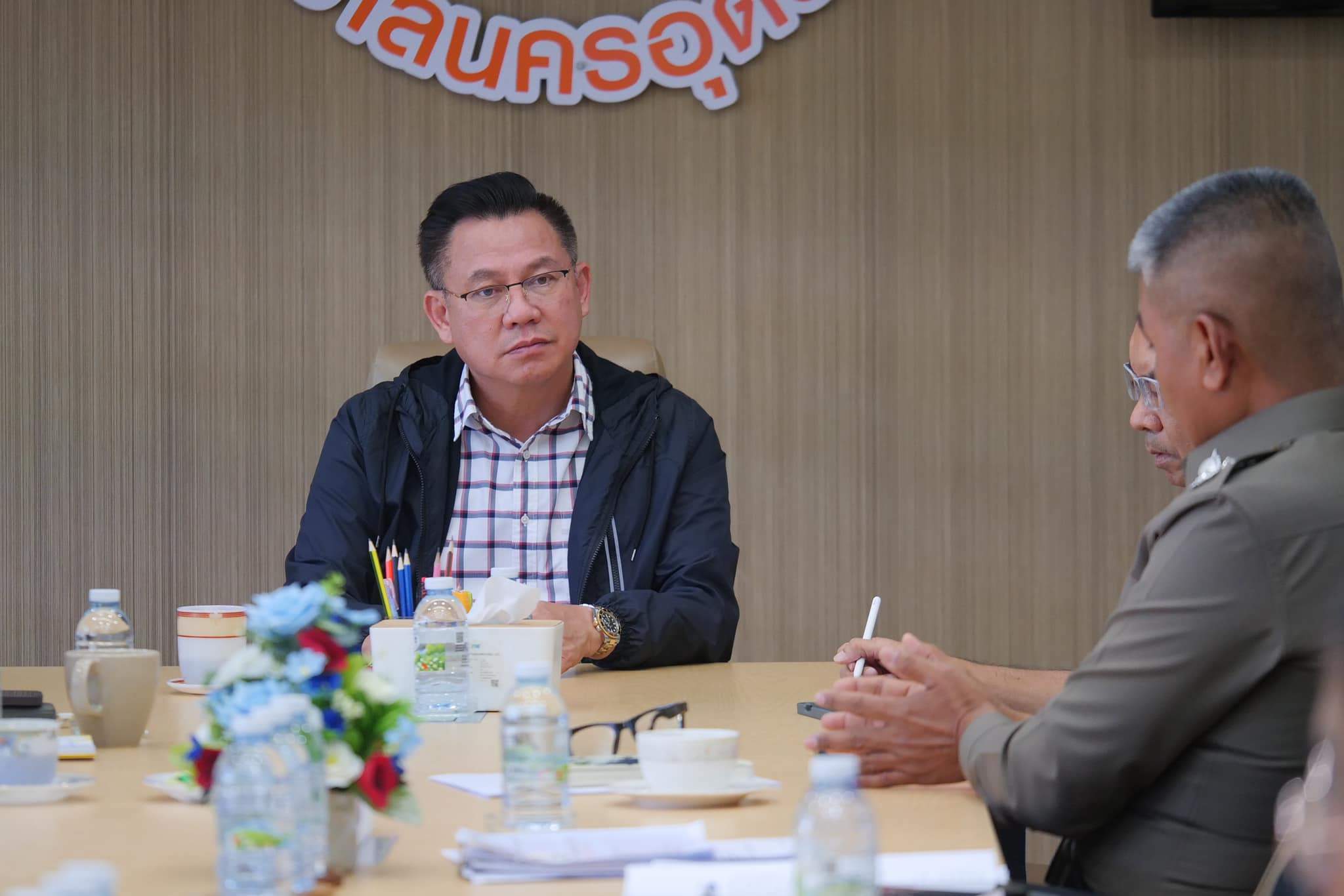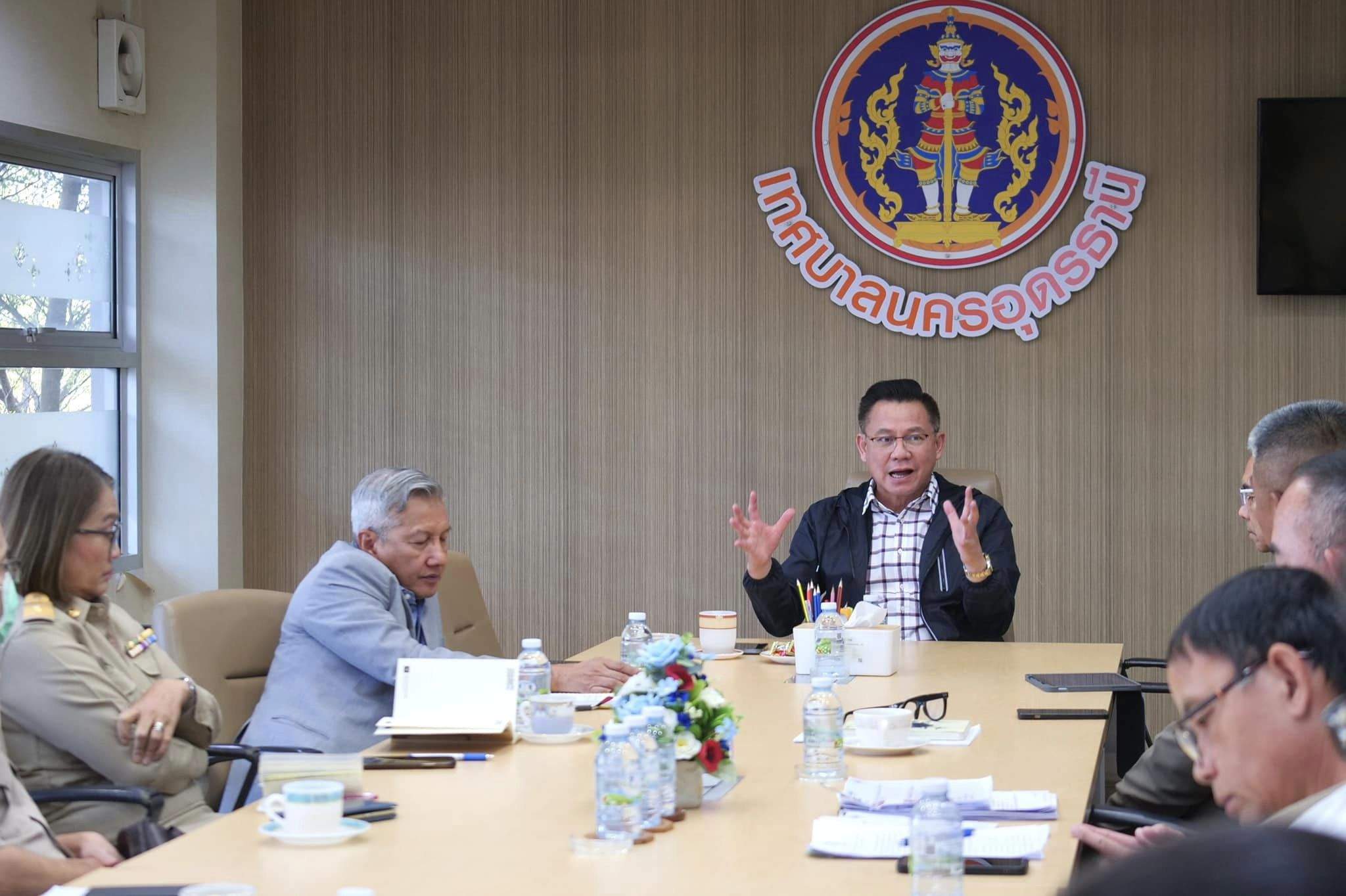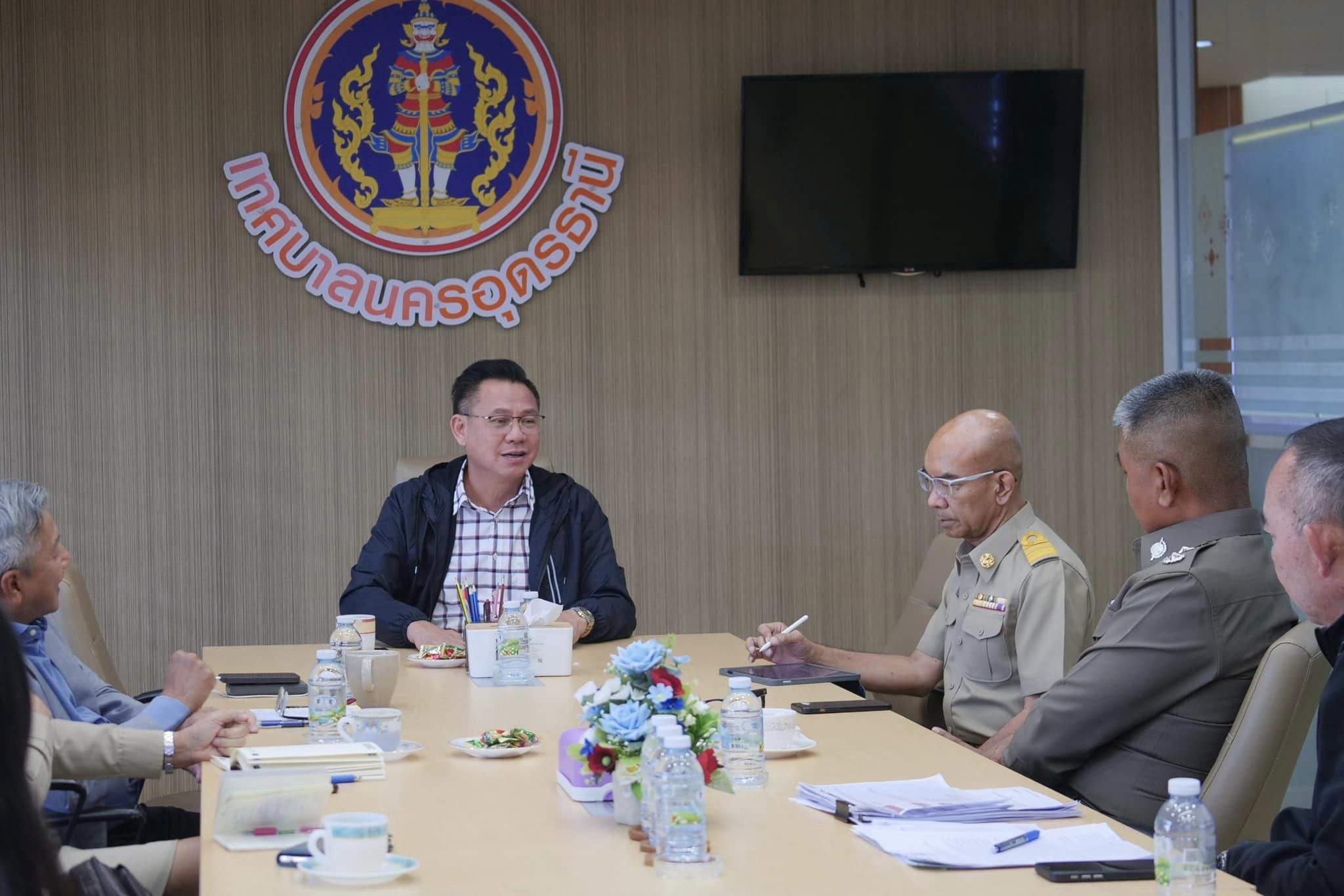 20 พ.ย.2566 เวลา 13.30 น. ณ ห้องประชุมหมากแข้ง ชั้น 2 สำนักงานเทศบาลนครอุดรธานี ดร.ธนดร พุทธรักษ์ นายกเทศมนตรีนครอุดรธานี ประชุมหารือขับเคลื่อนเมืองปลอดภัย และชุมชนยั่งยืน เพื่อร่วมกันแก้ไขปัญหายาเสพติดภายในชุมชน ร่วมกับ ตำรวจภูธรจังหวัดอุดรธานี นำโดย พล.ต.ต.สรรธาน อินทรจักร์ ผบก.ภ.จว.อุดรธานี โดยมี พ.ต.อ.อารี สินธุรา รองนายกเทศมนตรีนครอุดรธานี นายนิทัศน์ น้อยจันอัด รองนายกเทศมนตรีนครอุดรธานี สำนักสาธารณสุขและสิ่งแวดล้อม , กองการแพทย์ , กองสวัสดิการสังคม , กองสารสนเทศภาษีฯ , สำนักปลัด , ฝ่ายรักษาความสงบเรียบร้อย (เทศกิจ) , ฝ่ายนิติการ , กลุ่มงานบริการทางการแพทย์ และศูนย์บริการสาธารณสุข 1 เข้าร่วมประชุม