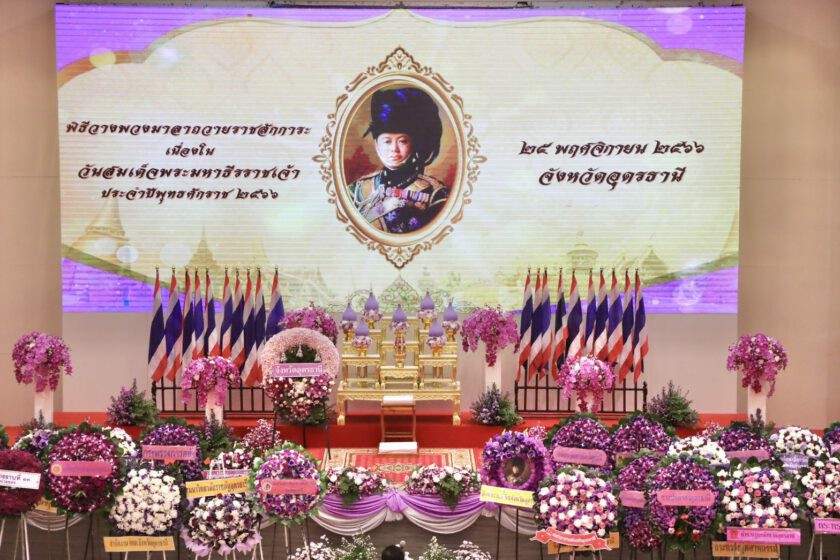 25 พ.ย.2566 เวลา 07.00 น. พ.ต.อ.ฉกาจน์ เทียมวงศ์ รอง ผบก.ภ.จว.อุดรธานี พร้อมข้าราชการตำรวจ ร่วมพิธีเนื่องในวันมหาธีรราชเจ้า ประจำปีพุทธศักราช 2566 พร้อมด้วยหัวหน้าส่วนราชการ ทหาร ตำรวจ พลเรือน และประชาชน โดยมีนายวันชัย คงเกษม ผู้ว่าราชการจังหวัดอุดรธานี เป็นประธานประกอบพิธีวางพวงมาลาถวายราชสักการะพระบาทสมเด็จพระมงกุฎเกล้าเจ้าอยู่หัว กล่าวถวายราชสดุดีน้อมรำลึกในพระมหากรุณาธิคุณ ณ หองประชุมทองใหญ่