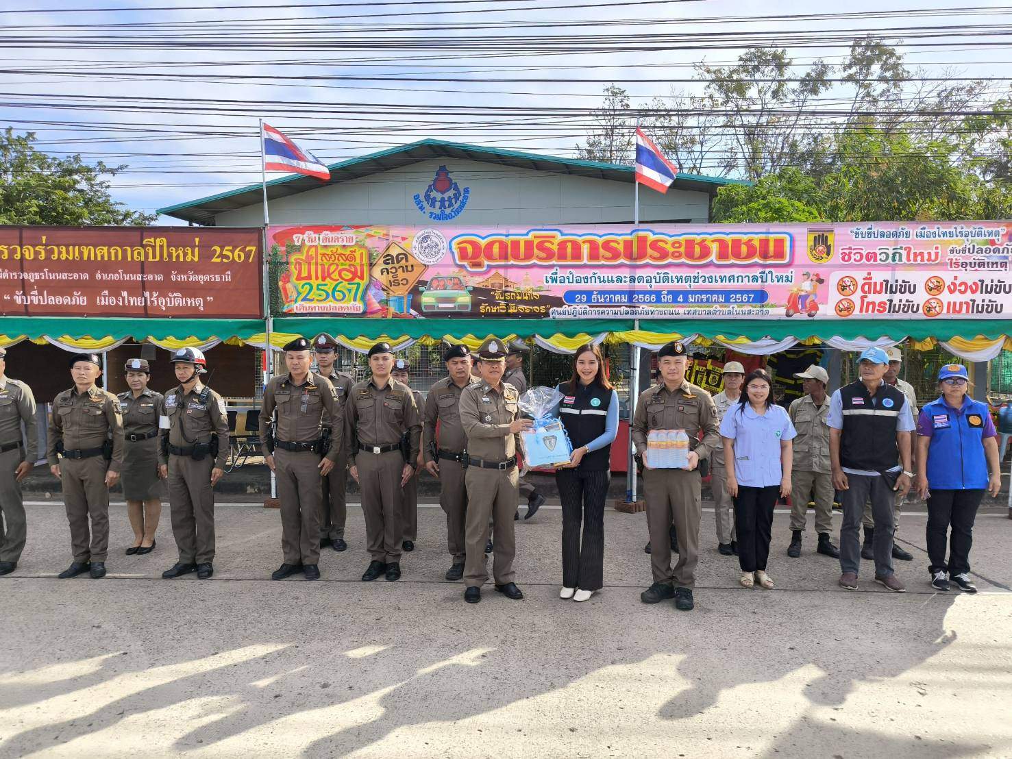-เวลา 09.30 น. พ.ต.อ.พิเชฐ วงษ์บุรี รอง ผบก.ภ.จว.อุดรธานี ได้มาตรวจเยี่ยมจุดตรวจ จุดบริการประชาชน,ช่วงเทศกาลปีใหม่ 2567 ในเขตพื้นที่ อำเภอโนนสะอาด ที่จุดตรวจจุดบริการ 409 และจุดตรวจจุดบริการโค้งทมนางามพบ พ.ต.อ.ปฐวี ก้อนวิมล ผกก.สภ.โนนสะอาด และข้าราชการตำรวจ, ฝ่ายปกครอง, ส่วนท้องถิ่น และ จนท.สาธารณสุข ให้การต้อนรับ ได้มอบ สิ่งของ แก่ผู้ปฏิบัติหน้าที่ประจำจุดตรวจจุดบริการ และกำชับการปฏิบัติหน้าที่ในการให้บริการประชาชน ช่วงเทศกาลปีใหม่ 2567 หลังจากนั้นได้เดินทางไป ตรวจเยี่ยมเขตพื้นที่อื่นต่อไป
