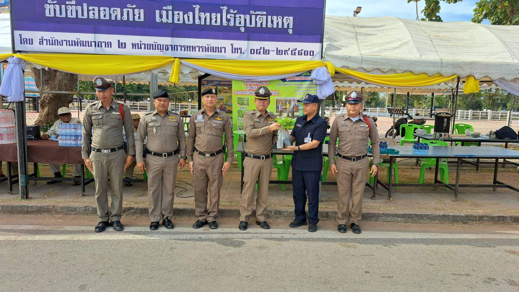 -เวลา 13.50 น. พล.ต.ต.สรรธาน อินทรจักร์ ผบก.ภ.จว.อุดรธานี มอบหมายให้ พ.ต.อ.พิเชฐ วงษ์บุรี รอง ผบก.ภ.จว.อุดรธานี ออกตรวจเยี่ยมสร้างขวัญกำลังใจแก่ผู้ปฏิบัติหน้าที่ประจำจุดตรวจบริการประชาชน ด่านโนนสูง โดยมี พ.ต.ท.สิทธิพร ธารากุลทิพย์ รอง ผกก.หน.สภ.โนนสูง และกำลังเจ้าหน้าที่ตำรวจประจำจุดตรวจร่วมโนนสูง ถ.มิตรภาพ ต.โนนสูง อ.เมือง จ.อุดรธานี อยู่ปฏิบัติหน้าที่ด้วยความเข็มแข็ง ร่วมกับฝ่ายทหาร- ทม.โนนสูง-น้ำคำ-อป.พร.-รพ.สต.โนนสูง รพ.สต.โนนสูง ได้ร่วมกันเรียกตรวจรถและลงข้อมูลการเรียกตรวจผ่านแอพ แพลทฟอร์มขับดี และได้มอบเครื่องดื่มให้ จนท.ผู้ปฏิบัติงาน